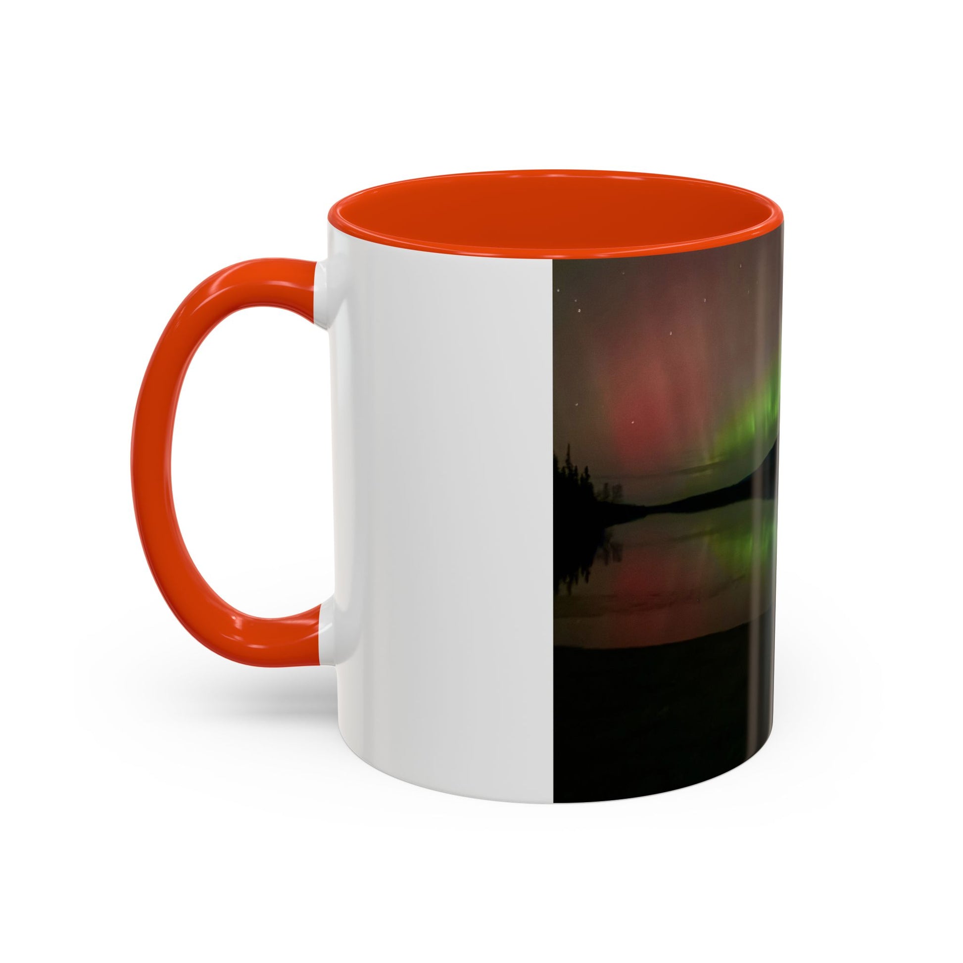 Nightlight on porcelain — this glossy ceramic mug captures the slow, hypnotic dance of the northern lights spilling over a dark lake. Sip slowly and feel the hush of late-night skies: cool green curtains, deep inky silhouettes of ridgelines, and a mirrored shimmer on water. The colored interior and handle add a touch of personality that echoes the aurora’s glow. Whether it becomes your go-to for early-morning coffee before a dawn hike or the mug you keep by the window during quiet, starlit evenings, it brings a calm, contemplative moment into everyday routines.