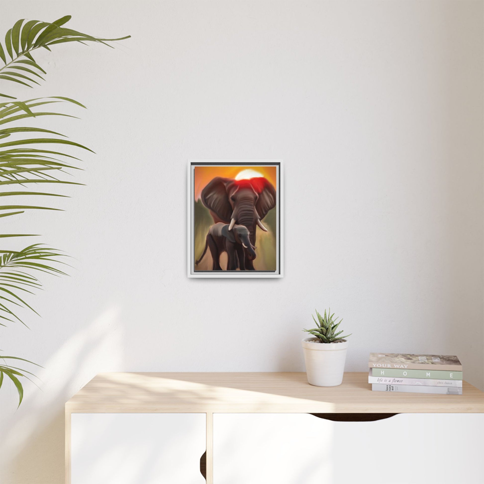 A richly textured matte canvas print framed in sleek pine, this piece brings a quiet, soulful moment into your space. The artwork—an evocative elephant and calf beneath a warm, setting sun—feels like a soft memory rendered in vibrant, painterly tones. The matte finish reduces glare and deepens color saturation so the warm oranges and muted greens sit gently against the fine canvas texture. Lightweight yet sturdy, the framed print arrives ready to hang with sawtooth hardware and a refined profile that suits living rooms, nurseries, or cozy reading nooks. It’s made with sustainable materials and non-toxic inks, so the peaceful mood it creates also aligns with mindful, eco-aware homes.