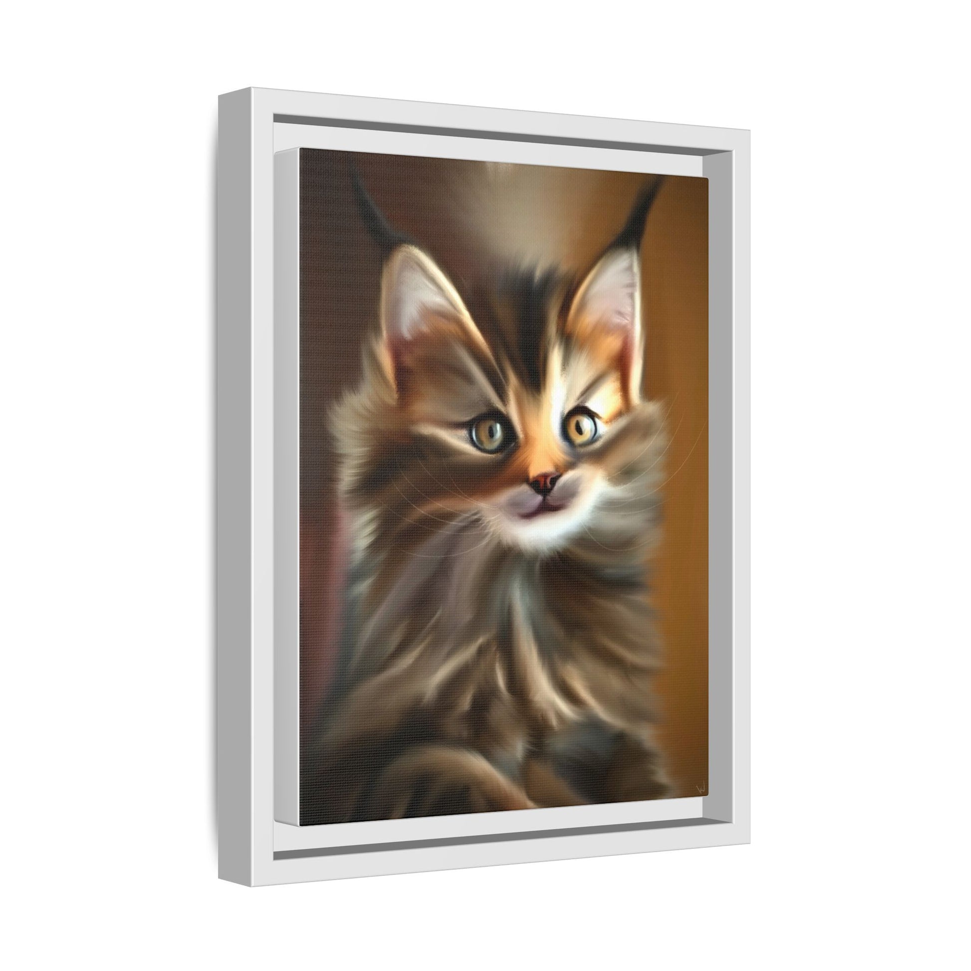 Framed Matte Canvas Kitten Portrait — Fluffy Tabby Cat Wall Art