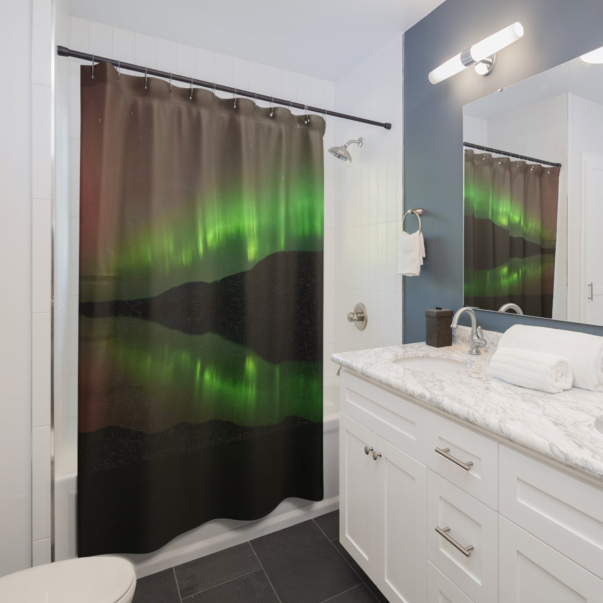 This shower curtain is here to add an original touch to any bathroom with your designs. Made with highly durable polyester, this curtain stays like new for a long time to come and is a perfect printing area for your art. Please note: While polyester offers adequate protection against water, a liner might be necessary for full waterproofness.