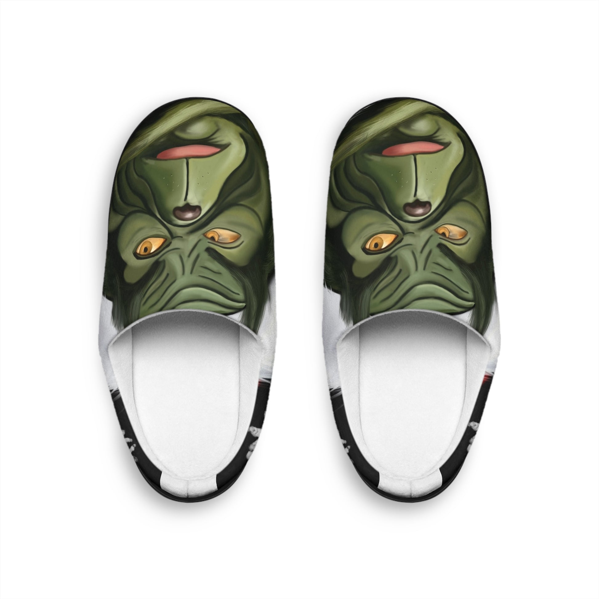 Sink your feet into evenings that feel like a cozy secret. These indoor slippers pair pillowy flannel fleece with a sturdy black rubber outsole so you can pad across cold floors without losing warmth or traction. The removable insole lets you air them out or swap in orthotic-friendly inserts. The printed design adds personality to quiet nights in — great for winding down with a book or staying comfy during slow weekend mornings. Soft against skin, simple to care for, and built for everyday lounging.
