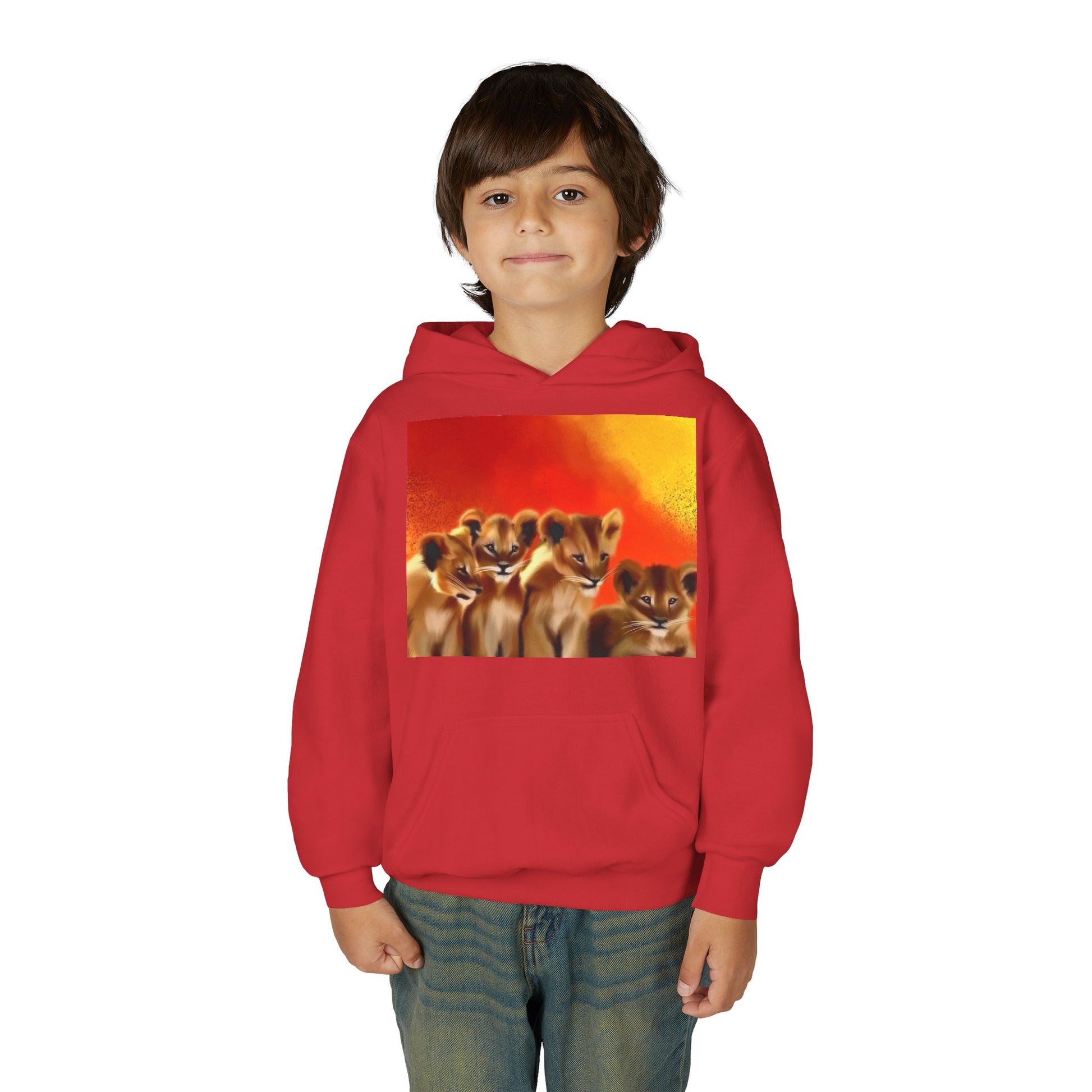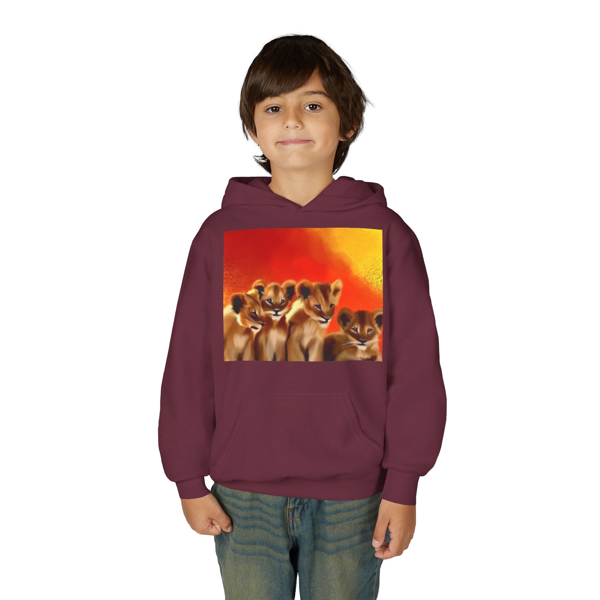Youth Hoodie — Cute Lion Cub Pack Graphic (Sunset Colors)